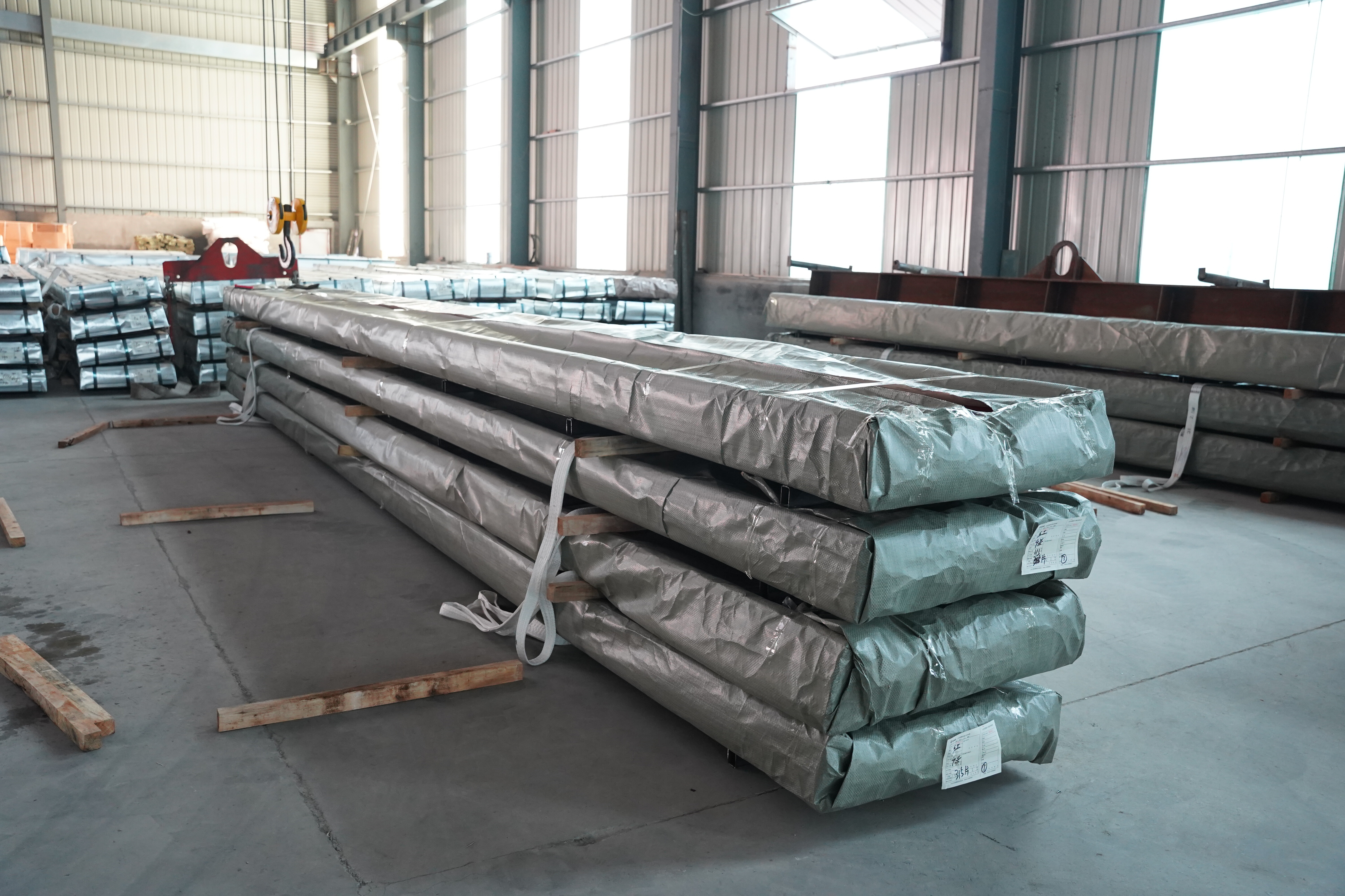 2.Emballage et renforcement des lots : Les feuilles empilées sont regroupées en un seul lot. L'extérieur est étroitement enveloppé de papier kraft imperméable et de toile plastique tissée pour prévenir l'humidité et les dommages physiques.